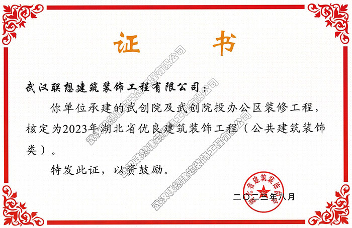 2023年湖北省優(yōu)良建筑裝飾工程(武創(chuàng)院及武創(chuàng)院投辦公區(qū)裝修工程)