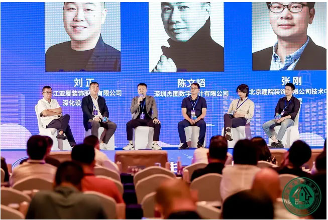 來自浙江亞廈裝飾股份有限公司、深圳杰圖數(shù)字設(shè)計(jì)有限公司等 5 家設(shè)計(jì)企業(yè)的設(shè)計(jì)專家,圍繞深化設(shè)計(jì)在建筑裝飾項(xiàng)目施工中地位及作用展開了主題對(duì)話、專題論壇。