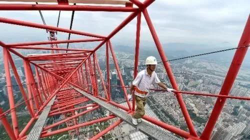 我多想說一句:工地人請你一定要小心,我真的不敢直視你這樣的操作,我想你的妻子更不愿看到這樣的情景,因為底下是萬丈深淵,一不下心就有生命危險。