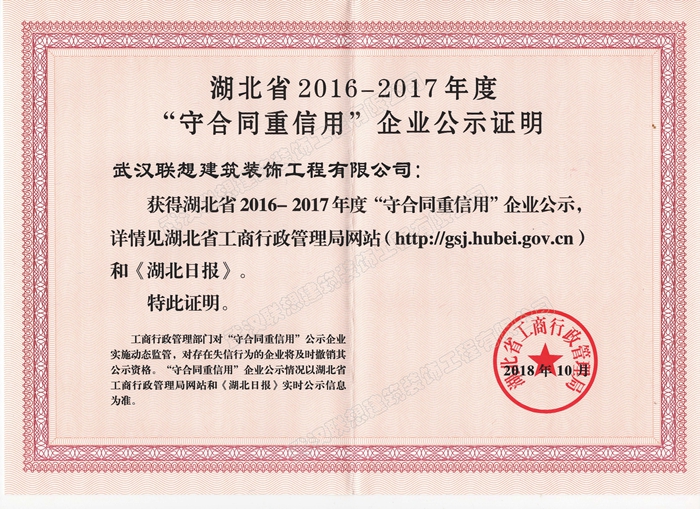 湖北省建筑裝飾協(xié)會(huì)3A信用評(píng)價(jià)