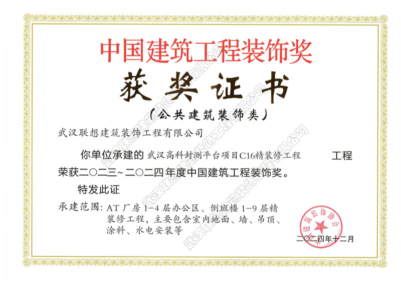 2023-2024年度中國建筑裝飾工程裝飾獎(jiǎng)(武漢高科封測平臺(tái)項(xiàng)目C16精裝修工程)