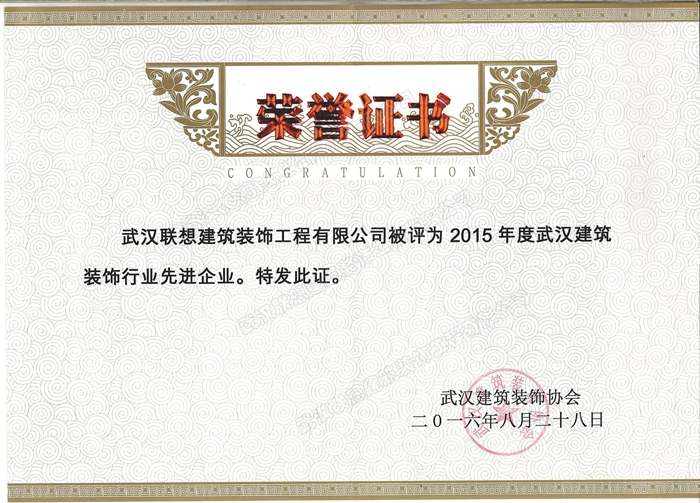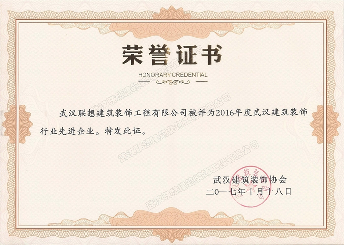 2016年度武漢建筑裝飾行業(yè)先進(jìn)企業(yè)
