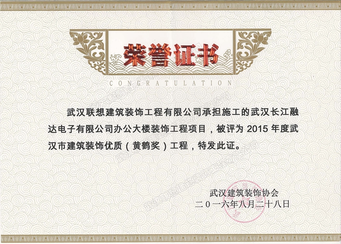 2015年度武漢市建筑裝飾優(yōu)質(zhì)工程黃鶴杯(武漢長江融達(dá)電子有限公司辦公大樓裝飾工程)